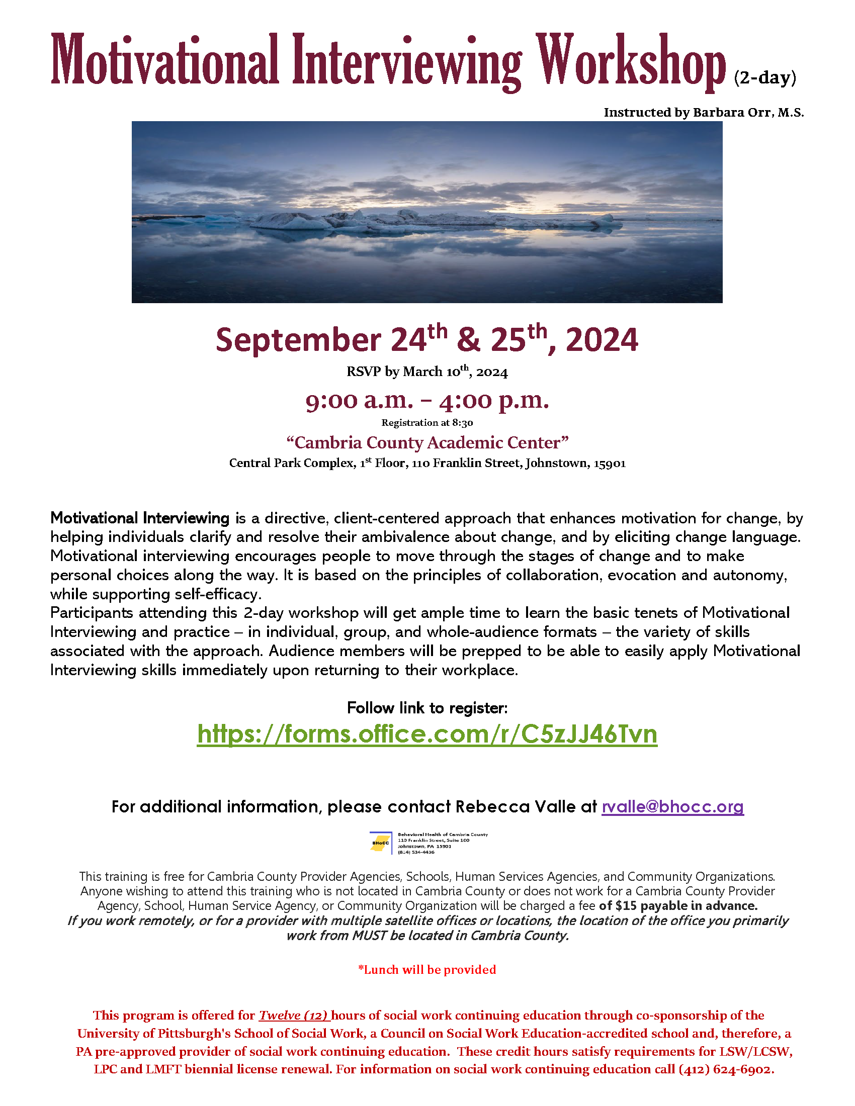 This training is free for Cambria County Provider Agencies, Schools, Human Services Agencies, and Community Organizations. Anyone wishing to attend this training who is not located in Cambria County or does not work for a Cambria County Provider Agency, School, Human Service Agency, or Community Organization will be charged a fee of $15 payable in advance.